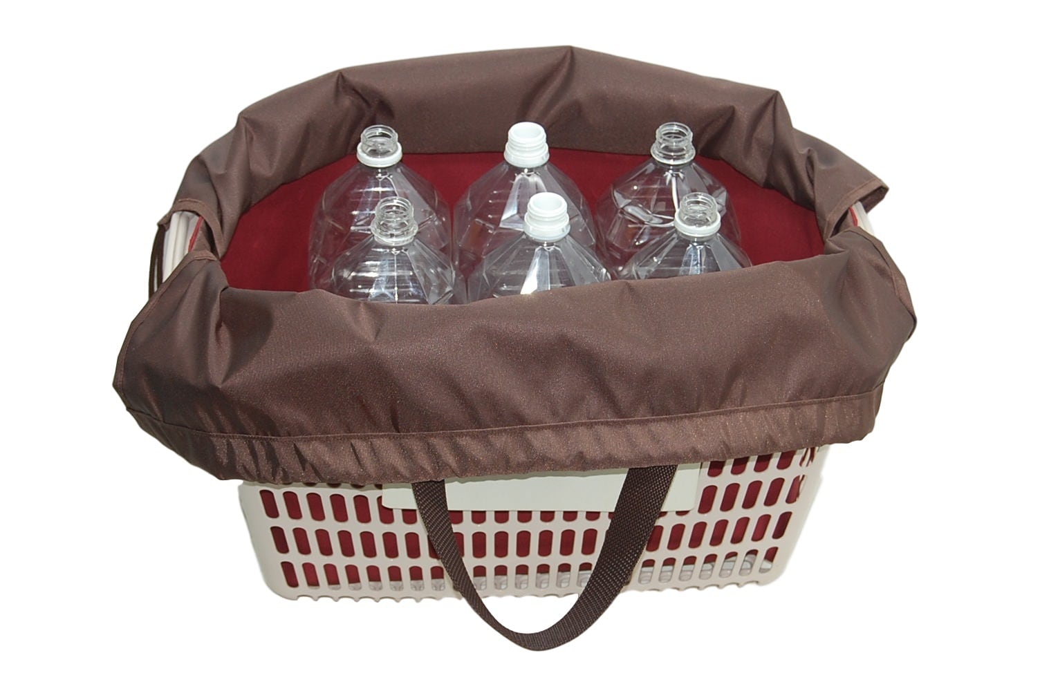 [エコライフ] レジカゴ型 BTO エコバッグ マチ24cm 24L 日本製 想定重量10kg(7 エンジ 弱撥水 帆布 8号×撥水 ポリエステル こげ茶)