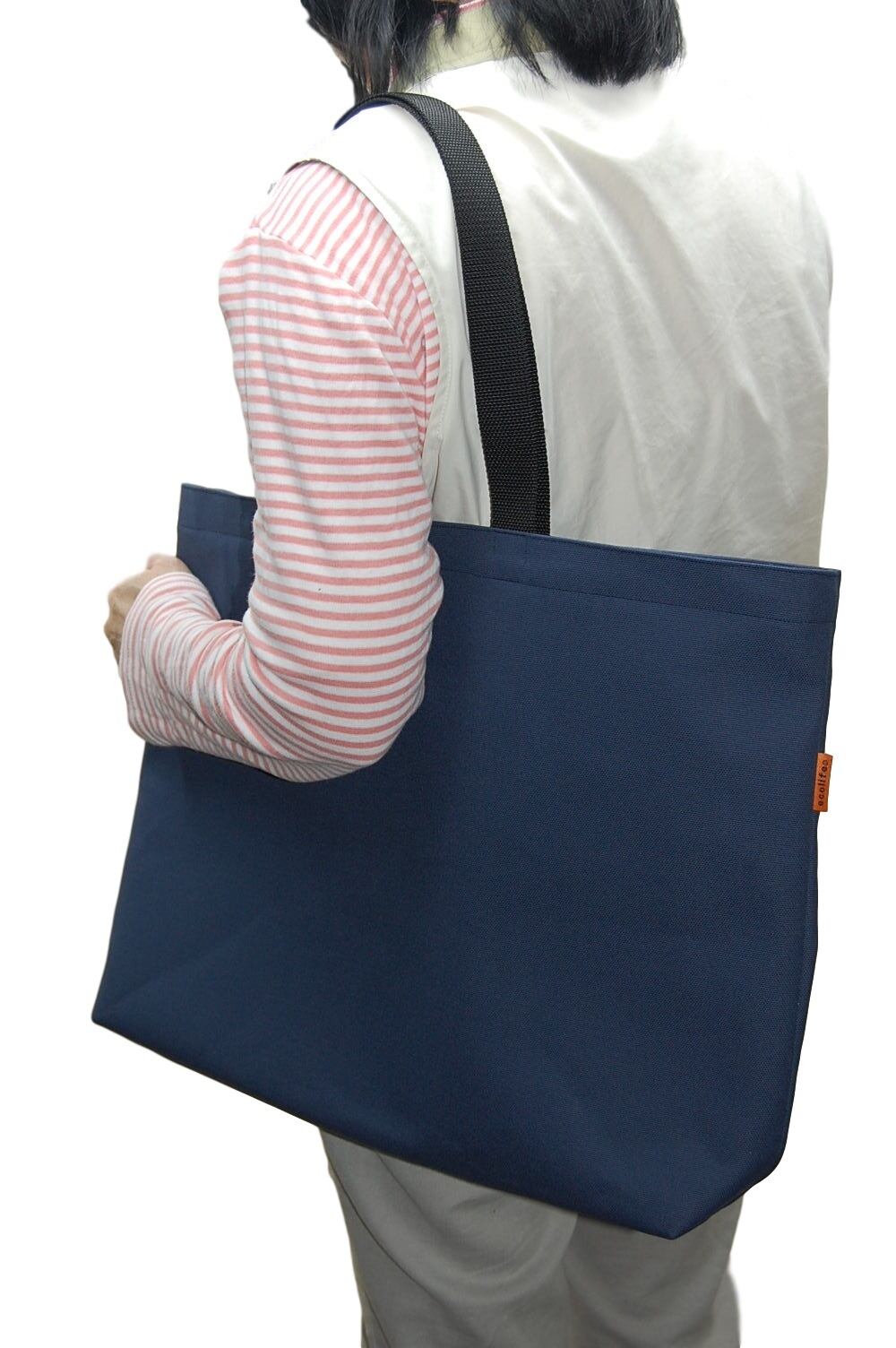 [エコライフ] A3 横型 BTO エコバッグ マチ10cm 16.5L 日本製 想定重量5kg(2 ネイビー ブルー 弱撥水 帆布 8号)