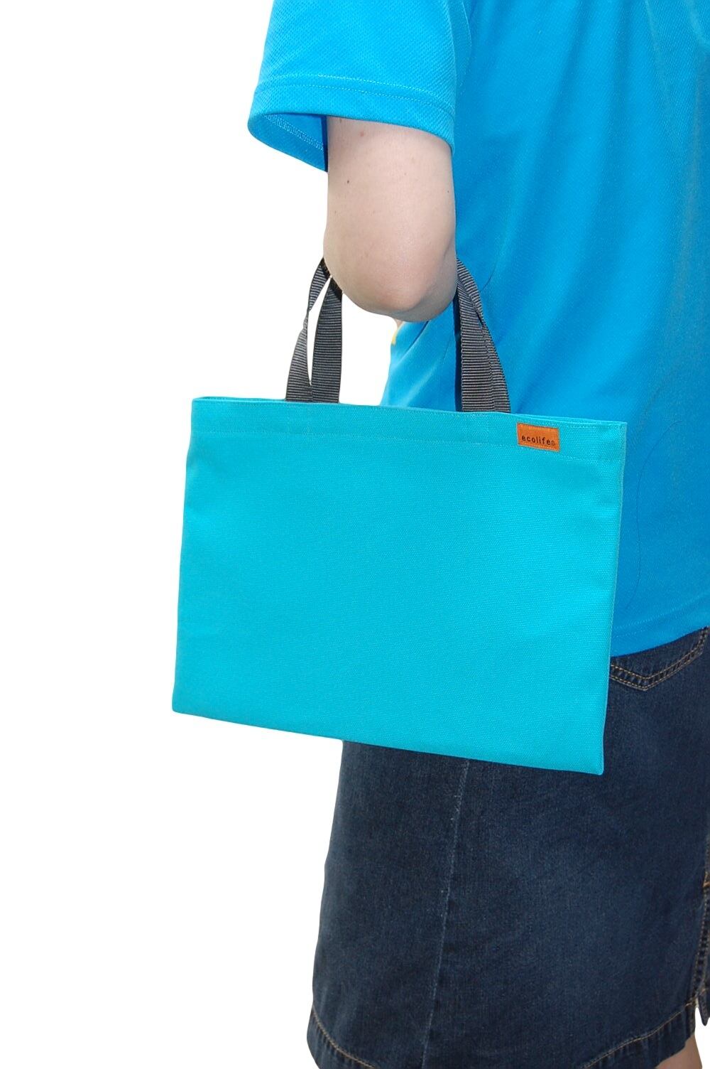 [エコライフ] B5 横型 BTO エコバッグ マチ0cm 日本製 想定重量2kg(エメラルド ブルー 弱撥水 帆布 8号)