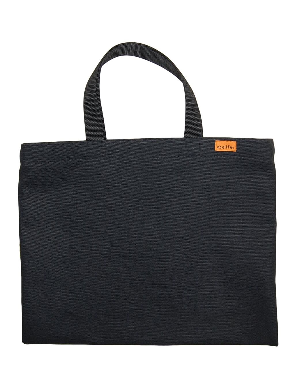 [エコライフ] A4 横型(L) BTO エコバッグ マチ0cm 日本製 想定重量2kg(1 ブラック 弱撥水 帆布 8号)