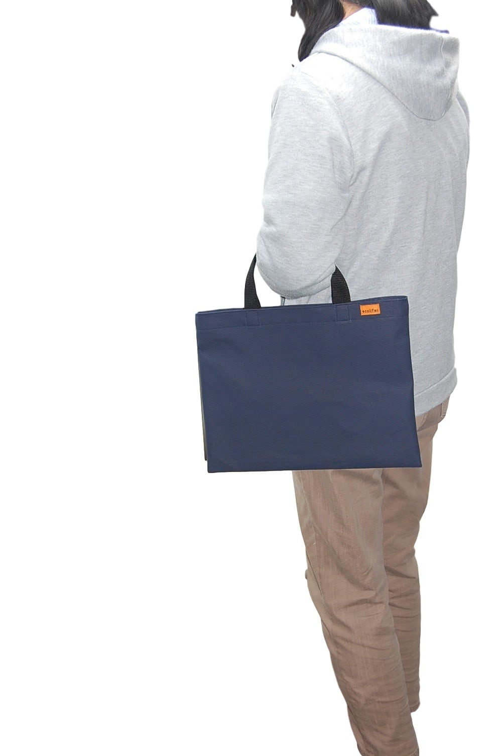 [エコライフ] A4 横型(M) BTO エコバッグ マチ0cm 日本製 想定重量2kg(2 ネイビー ブルー 弱撥水 帆布 8号)